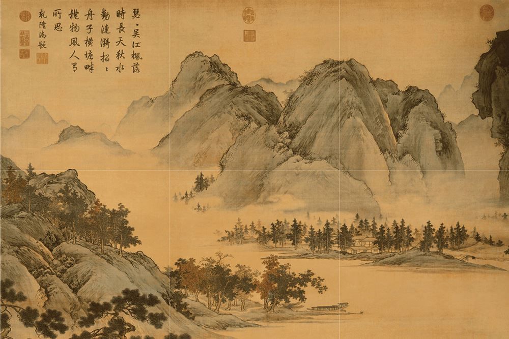 <秋江待渡>是中国明代画家仇英创作作品,意境清幽。立体式深远构图法,近树繁茂远山起伏,澄江如练,清秋气爽。